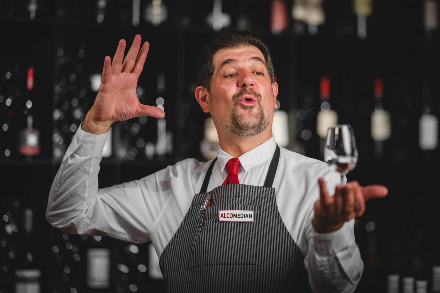In seinem neuesten Programm «Alcorithmus» stellt sich der Weinkabarettist Alcomedian einer überraschenden Konkurrenz: Nicht ein anderer Sommelier, sondern ein Algorithmus scheint ihm den Rang abzulaufen. Zwischen Flaschen, Gästen und Google-Suchergebnissen fragt er sich mit viel Wortwitz: